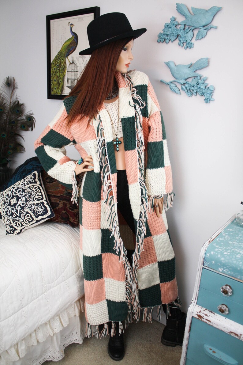Long Upcycled Granny Square Patchwork Cardigan Crochet Bell Sleeve Sweater Boho Hippie Country Chic Woman S Kimono Fringe Coat Craibas Al Gov Br